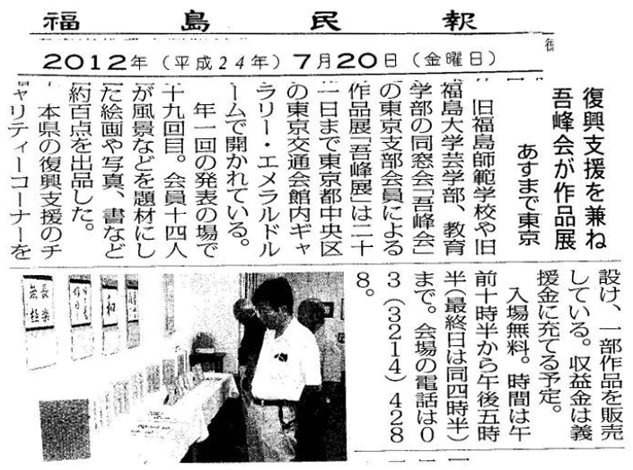 【3】、支部の主な活動としては、吾峰の発送だけになっているが、19年間続いてきた吾峰会東京支部展の後援をしている。